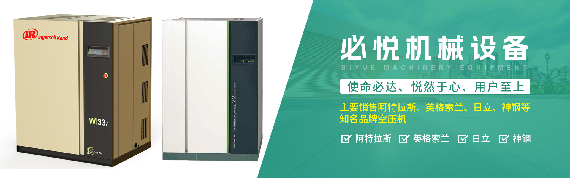 主要销售金年会网页版页面登录、英格索兰、日立、神钢等知名品牌空压机